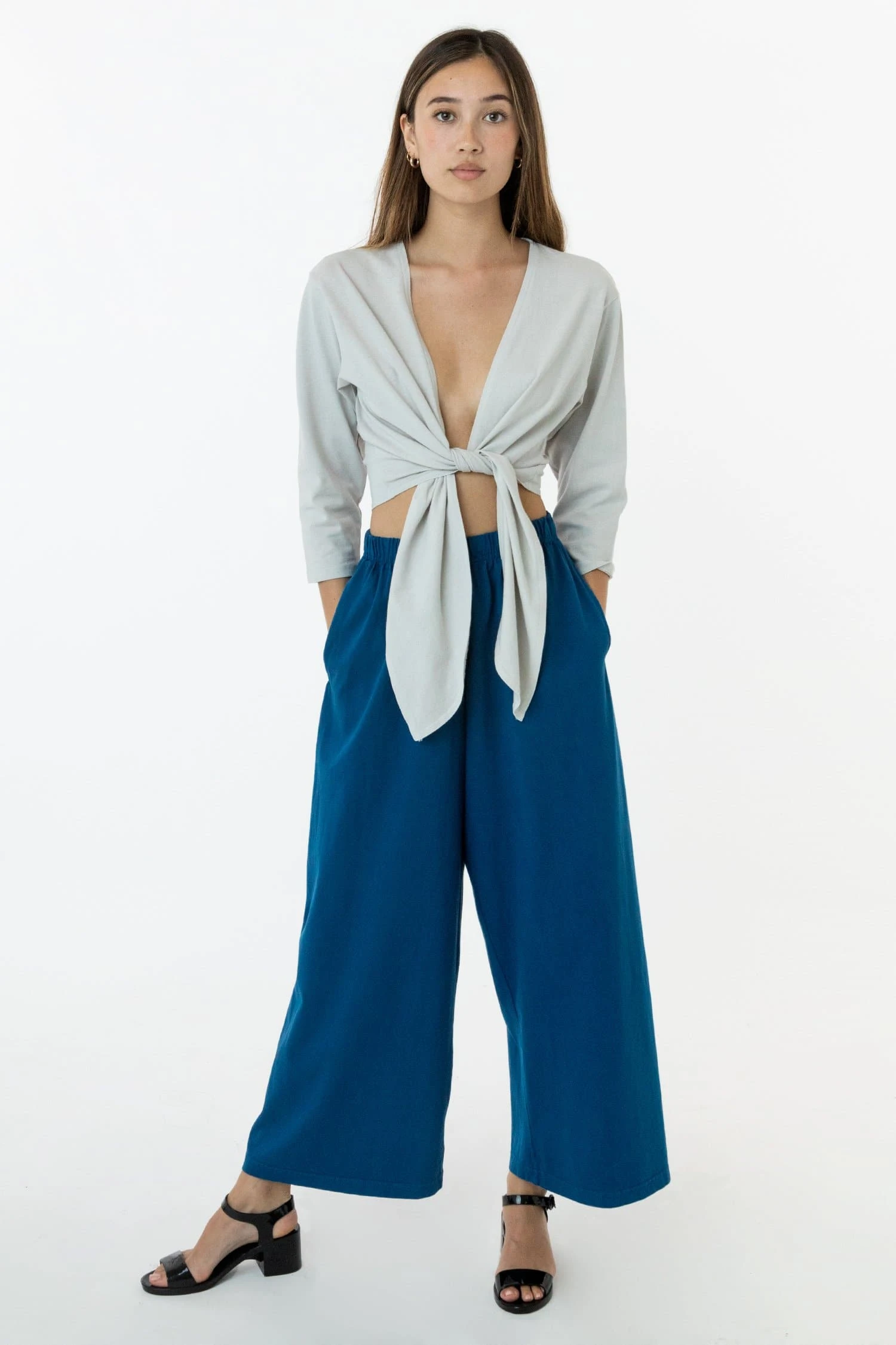 This relaxed lounge pant is made of our 7.5 oz 14 singles jersey and features a generously chic fit and comfortable elastic waistband. Pair these pants with a baby tee for indoor lounging and dress them up with a fitted turtleneck or your favorite blouse. Also features 2 deep side pockets. Made of 100% cotton, garment dyed and shrink-free. Made in South Central, Los Angeles by workers earning fair wages.