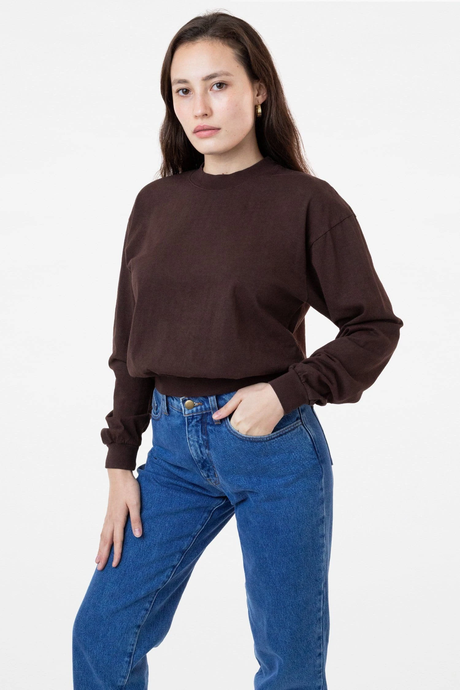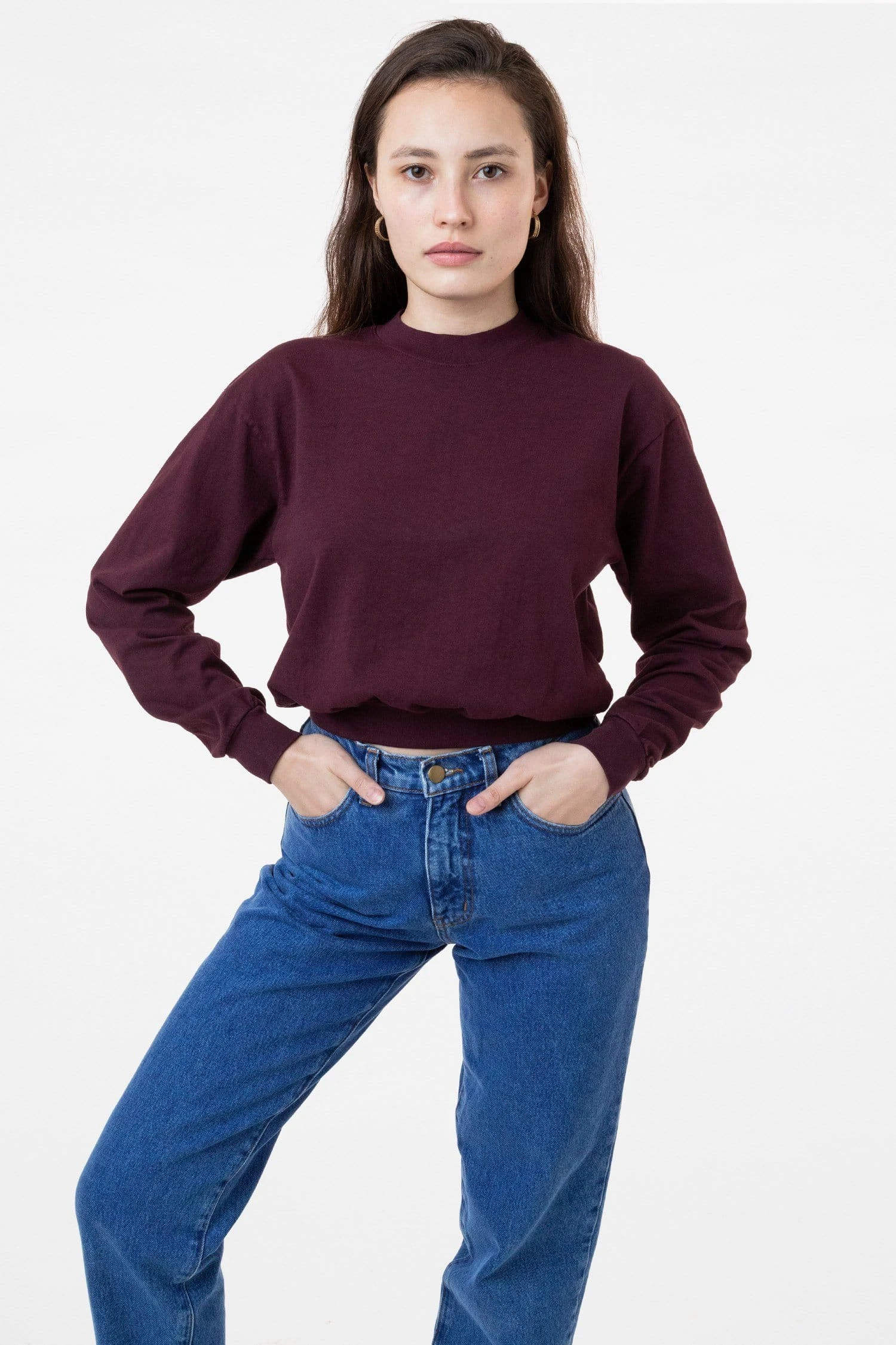 Loose drop shoulder tee with a fitted rib waistband to show off your favorite high-waisted denim. This tee is part of our garment dyed line, which is always custom dyed, shrink-free and sewn with 100% USA-grown cotton.