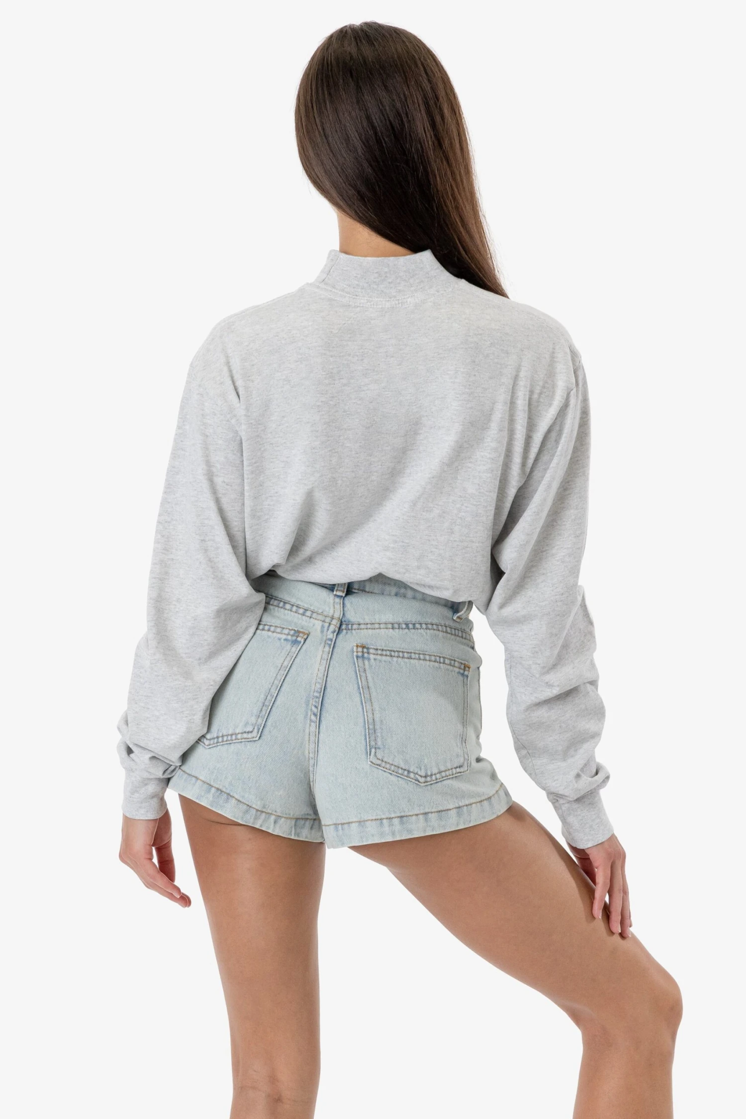 This one-of-a-kind t-shirt is made with comfort in mind. This style features a large sleeve, super high mock neck, and boxy, wide fit around the body. Made of our classic 18 singles open-end jersey, just like the essential 1801. Wear with jeans, sweats, or bike shorts for a perfectly oversized look.