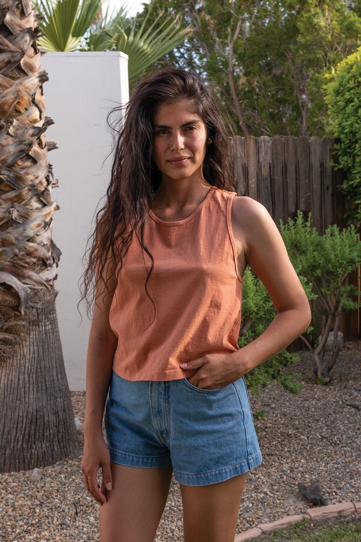 The Mid-Tank is the ideal silhouette for those who haven warmed up to the idea of cropped garments. Not too oversized and not too fitted, this tank is a wardrobe staple that you can wear for any occasion.