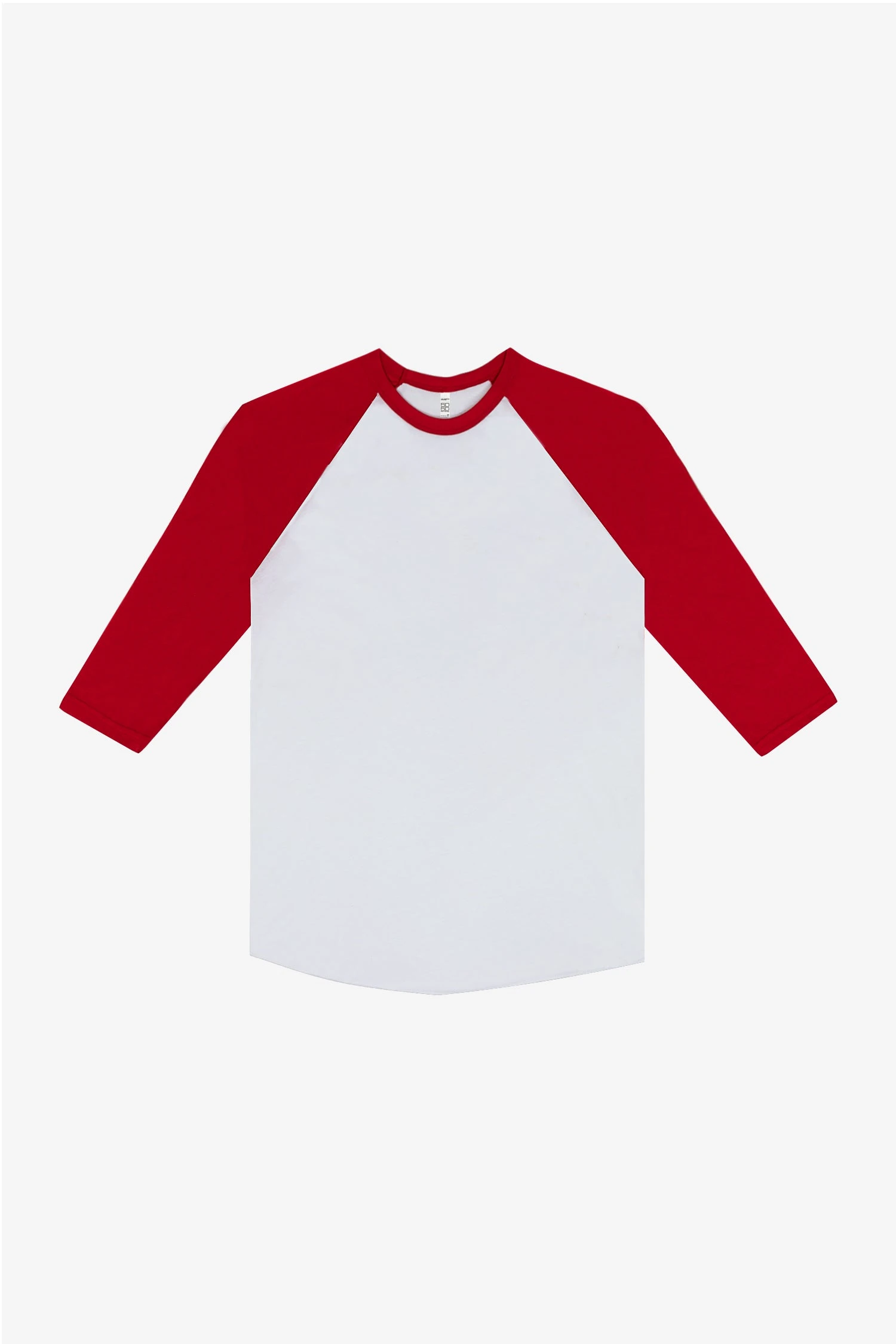 This classic unisex raglan is made from one of our bestselling, original textiles. Our 50/50 poly cotton is lightweight and versatile. This style features 3/4 length sleeves and a raw-finished hem.