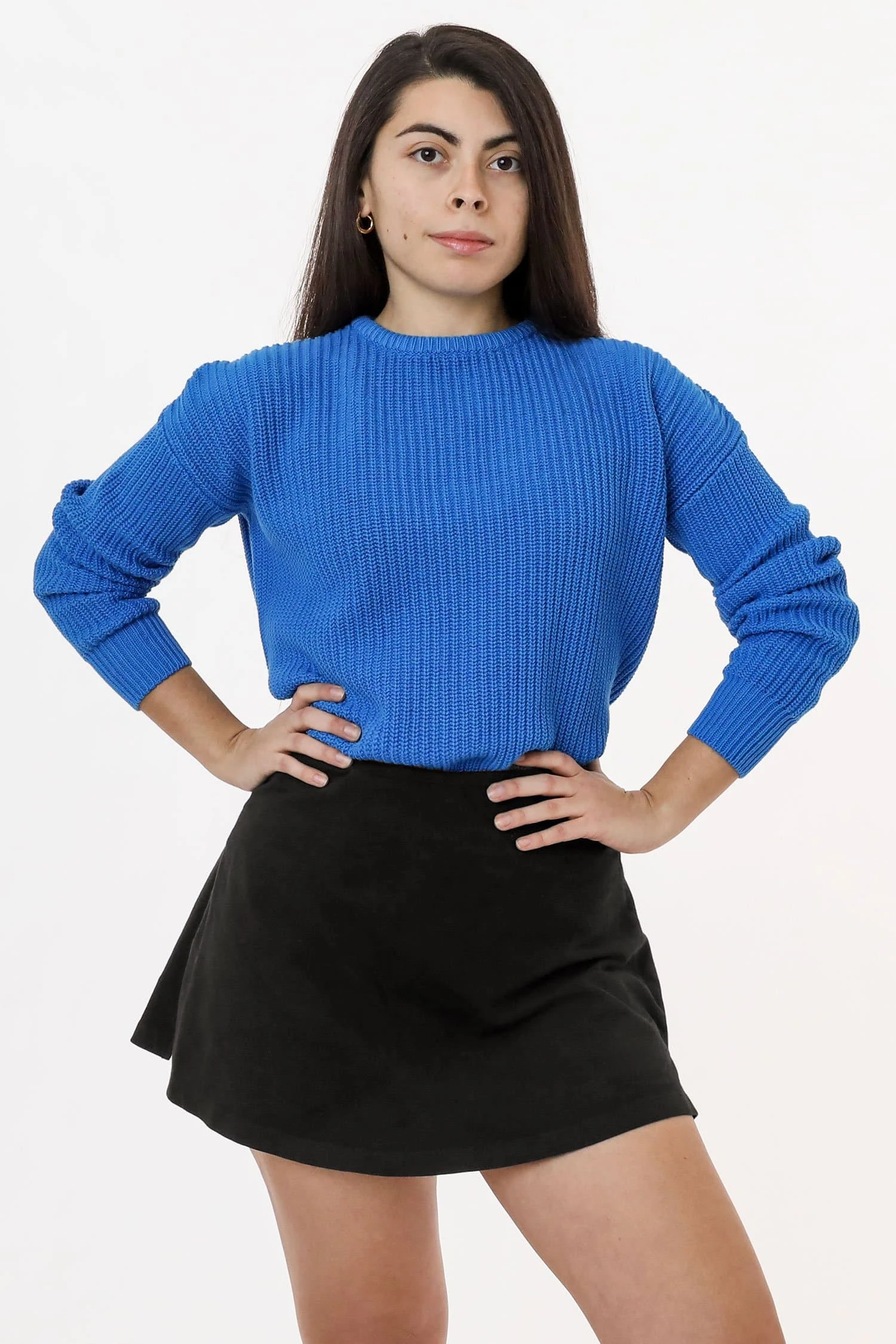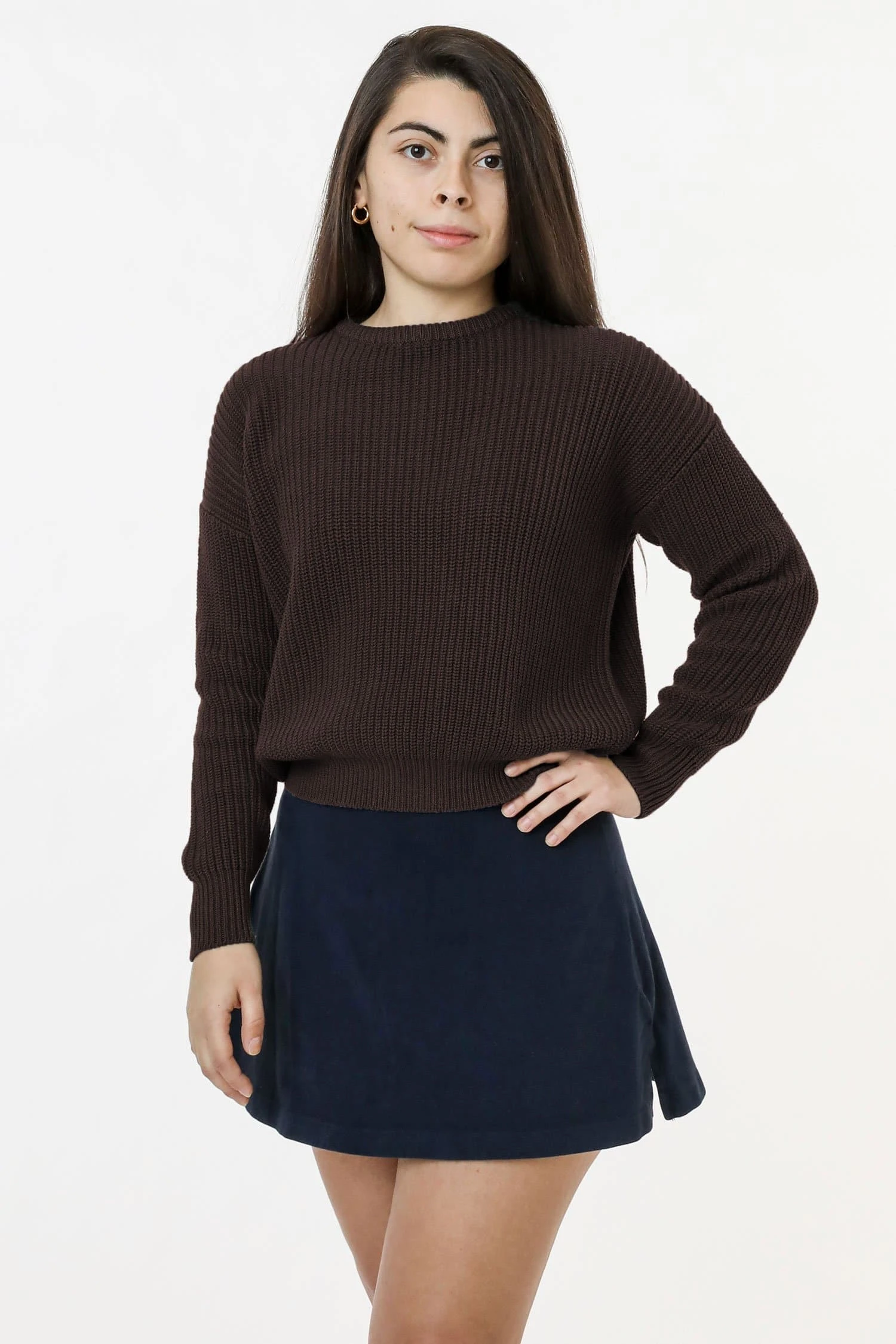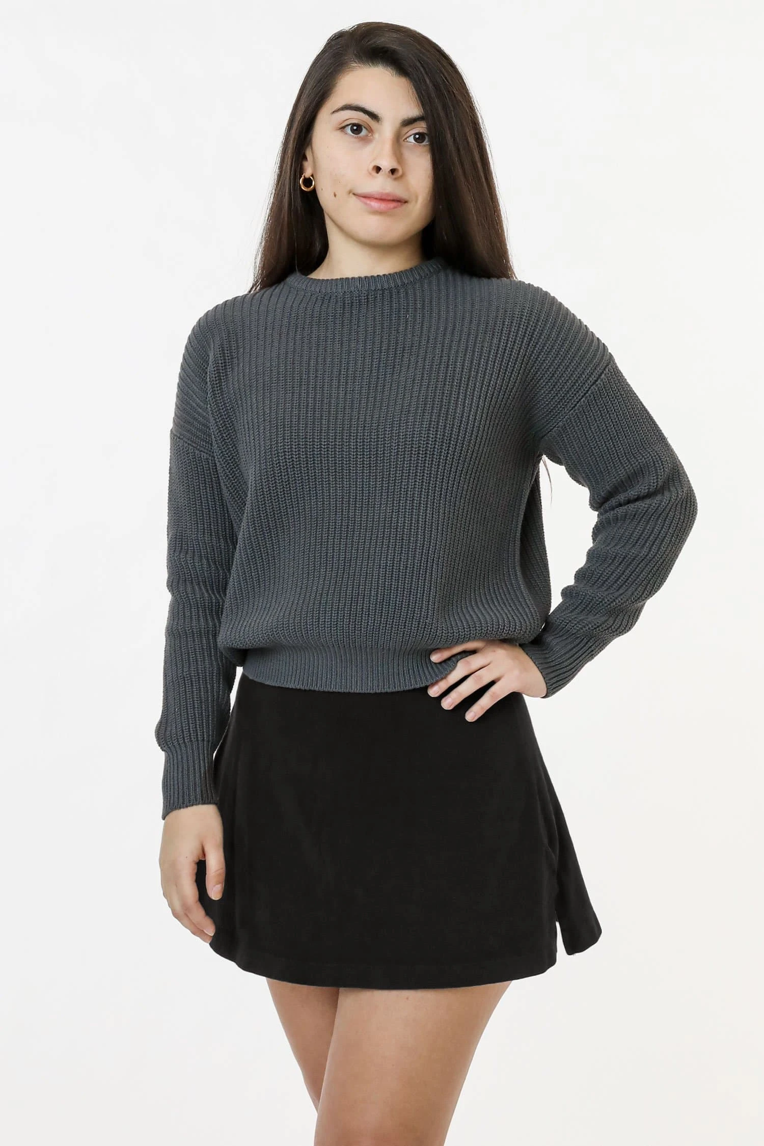 The iconic Fisherman Pullover is back with a few updates. We used open end yarns and garment dyed these sweaters for a naturally broken-in feel and vibrant color finish. Pair this sweater with our RGB300 Tennis Skirt and Opaque Tights for a sophisticated look or layer it with one of our turtlenecks for extra color and warmth. Lightweight enough for Spring and versatile for colder weather. This knit will loosen some as you wear to accommodate different lengths and widths, but will return to the original size after wash. Shrink-free due to garment dyeing.