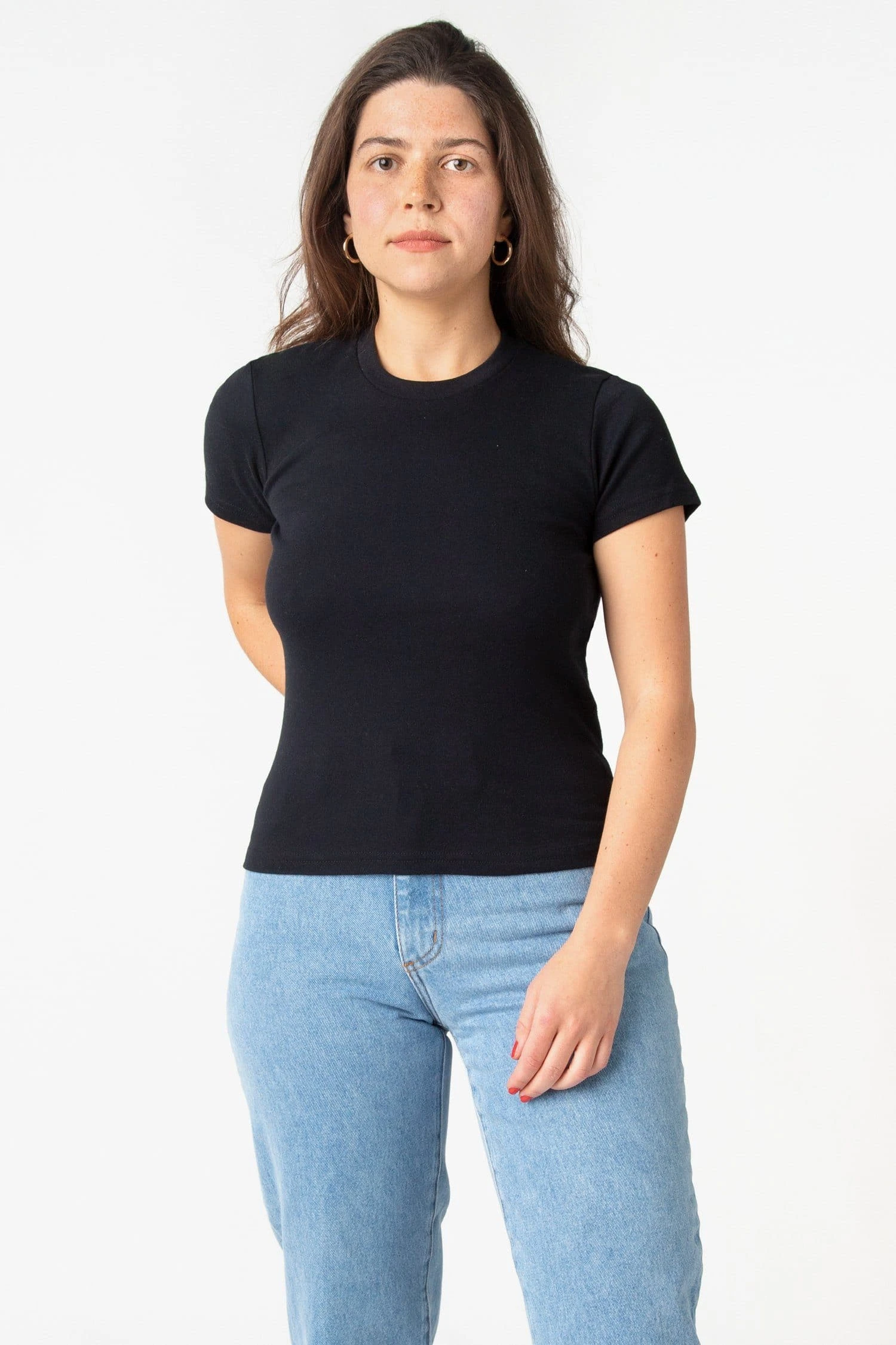 In the late 90s, Dov Charney led the resurgence of the classic baby tee with his ‘Classic Girl’ collection of soft, fitted t-shirts for women. We’ve brought back the baby tee with a few updates. Our Crew Neck Baby Tee has a more traditional neckline similar to that of a t-shirt and longer sleeves for extra comfort. This piece is timeless, and easy to wear year-round and is made of 100% combed cotton. Although this piece is currently only offered in one size, this fabric stretches up to 2 times the original fit to suit a variety of body types and has excellent durability through repeated washings. Best of all, it is made in Los Angeles where our workers earn fair wages.