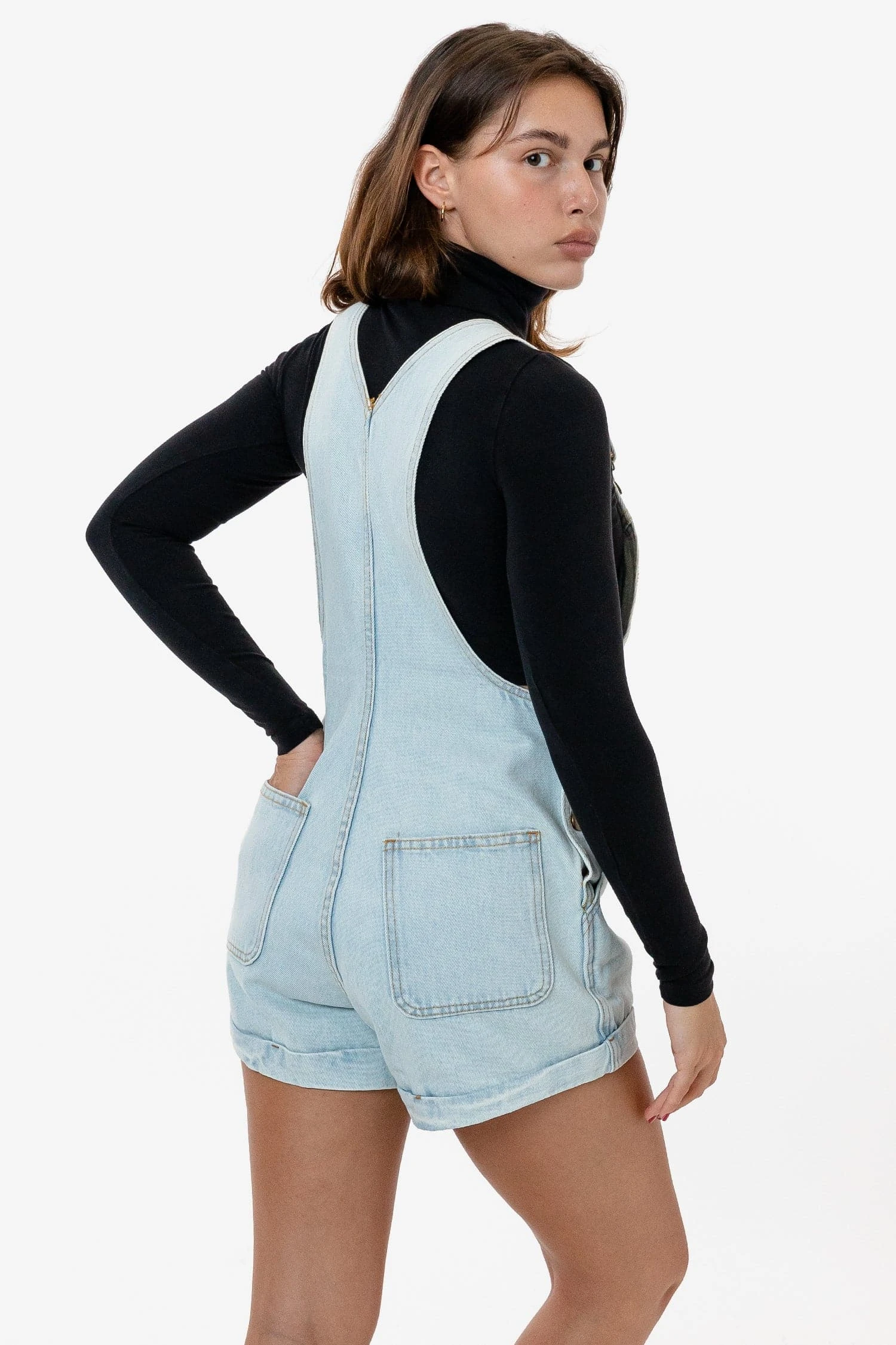The Denim Cuffed Short All is made of our rigid 14 oz. denim made of 100% US-grown cotton. These short alls have a relaxed fit and adjustable straps for an easy, comfortable fit. This style features side pockets, back pockets, and a chest pocket with zip so you can store all the belongings you need on the go without having to worry about losing anything. Dress these overalls up by layering with a turtleneck or sweater and tights in the winter, and pair with our classic baby tees and crop tops for the summer.