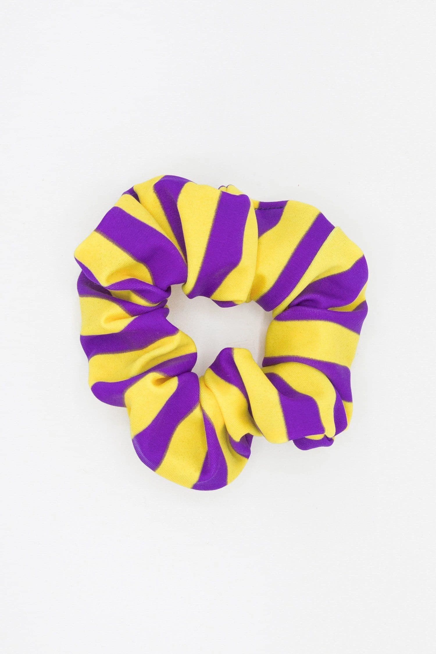 A scrunchie made to match your favorite swim styles. This classic, thick scrunchie is made of Nylon Spandex for a playful look that keeps your hair from creasing. Just like our matching swimsuits, our scrunchies are made in the USA. Our experienced sewers earn up to $25 an hour and no less than $16; additionally workers have healthcare benefits for less than $15 per week, a 401k plan, paid sick days, subsidized bus passes and favorable overtime benefits.