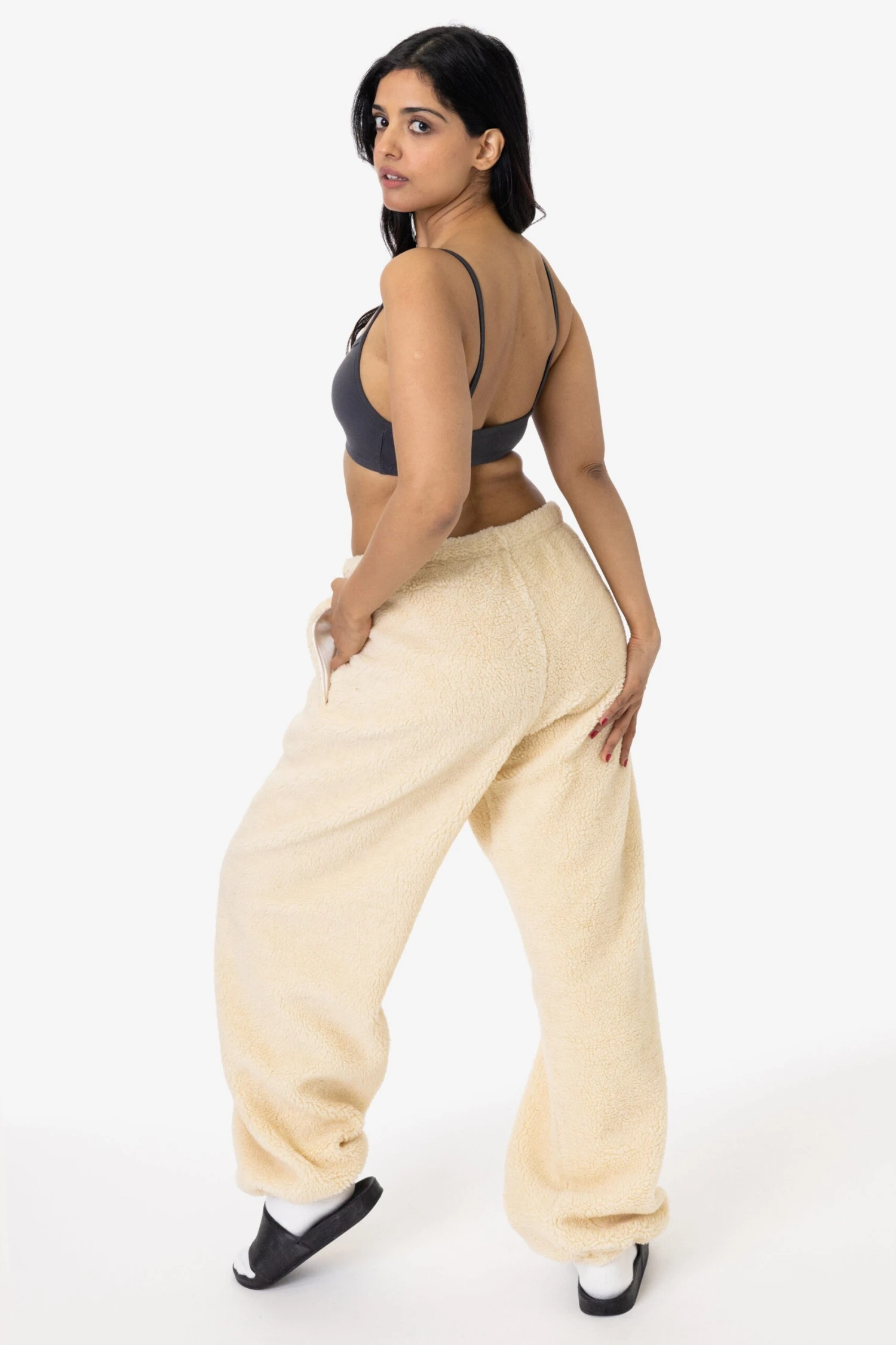 The Sherpa Sweatpant is a new, unisex staple for the coldest temperatures, featuring a drawstring-adjustable elastic waistband and elastic hem at the ankle for an insulating fit. This style has the same fit as our bestselling HF-04 Heavy Fleece Sweatpant, but with a wider leg and sits at the natural waist with 2 side pockets. Women may choose to wear it oversized and at the high or low waist. This sweatpant is made of a soft yet textured polyester fabric that has some stretch to it and is lined with a lightweight, warming cotton jersey for ultimate comfort.