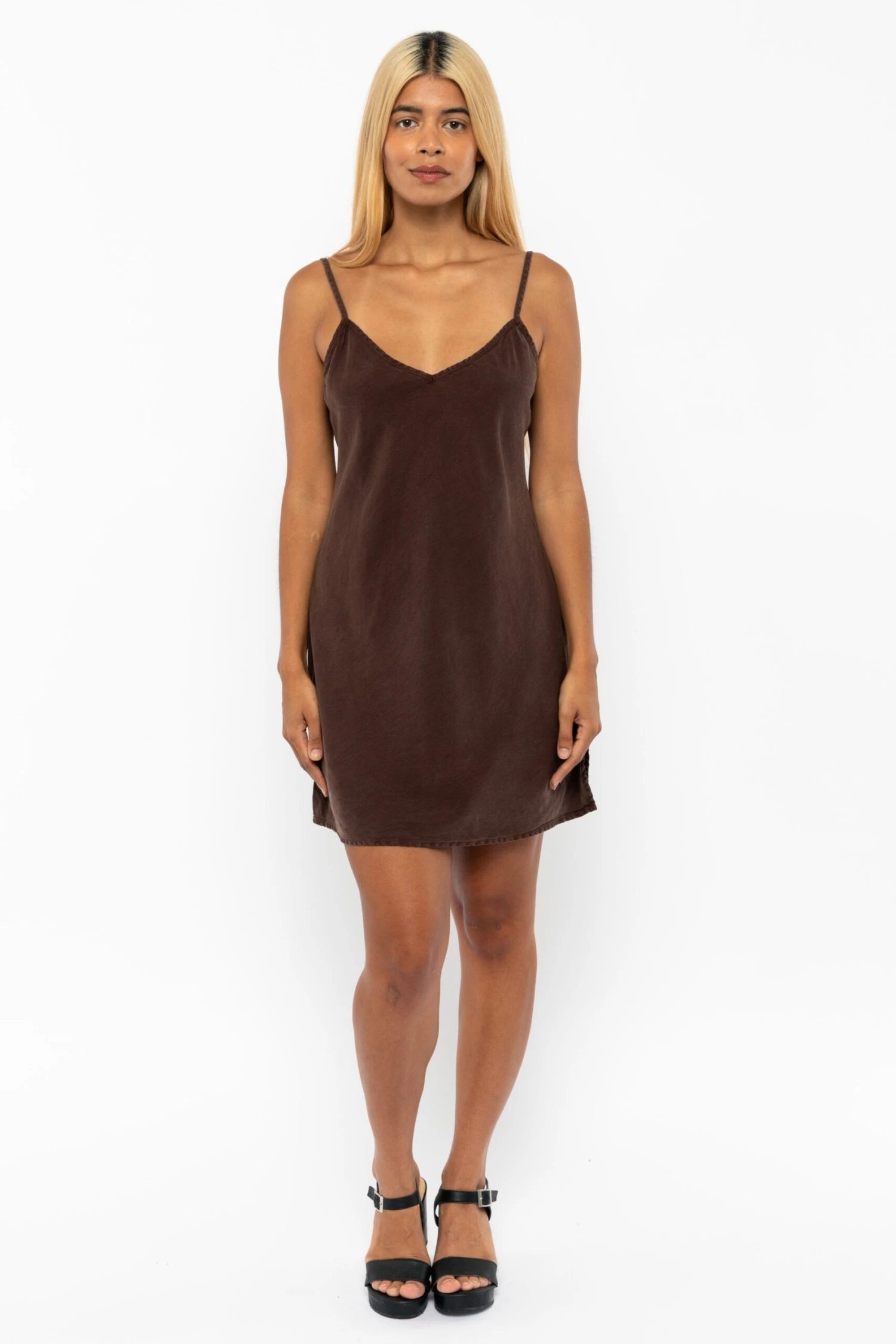 A lightweight mini slip dress with a breezy fit that can be worn from day to night– or to bed. This dress has adjustable spaghetti straps and tasteful slits at the sides. Our Tencel fabric is created with yarn made from a blend of Eucalyptus and Beech tree pulp.