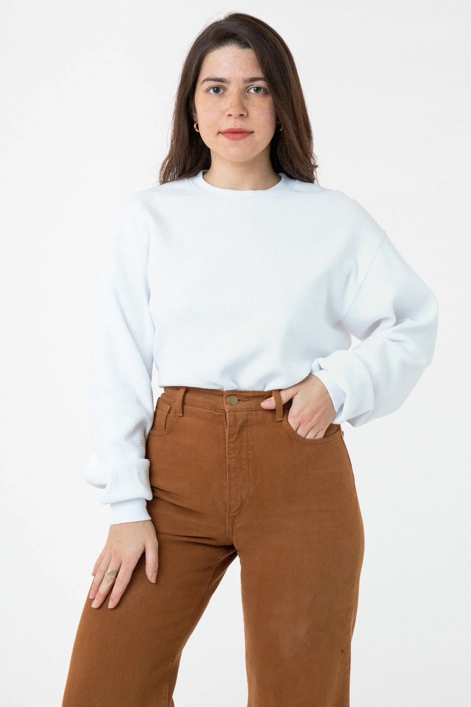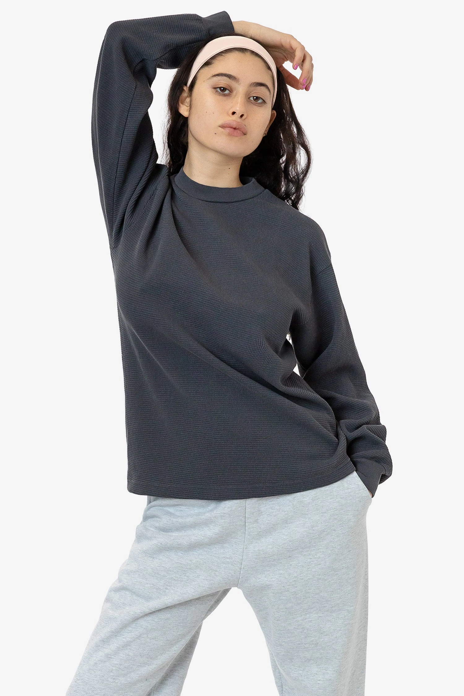 This heavyweight thermal will keep you warm while remaining versatile. This piece goes beyond the traditional lightweight thermal you would layer to suit modern needs. This long sleeve thermal is almost like a sweater on its own in thickness and bulk. Unlike most thermals that shrink in the wash, ours is garment dyed and laundered so it is shrink-free. You can size down for a more fitted look or try your regular size for an updated, boxier fit. Pair this with sweatpants and sweatshirts from our Heavy Fleece series and you are ready for winter.