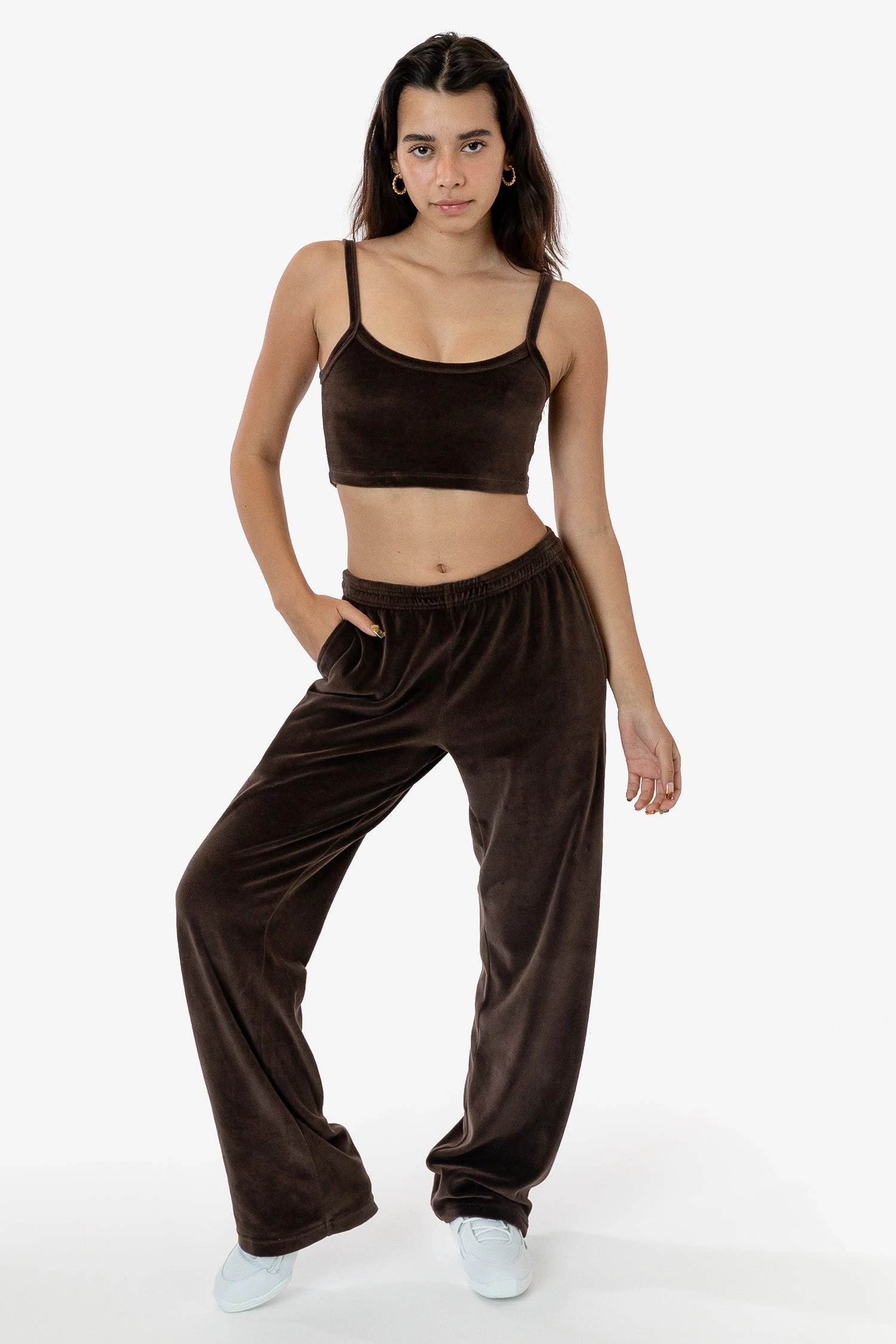 Our velour lounge pants have a roomy, straight-leg fit and can be worn high or low waisted depending on your mood. These pants have 2 side pockets and an adjustable drawcord inside the elastic waistband. We recommend sizing up one size if you prefer a more generous fit.